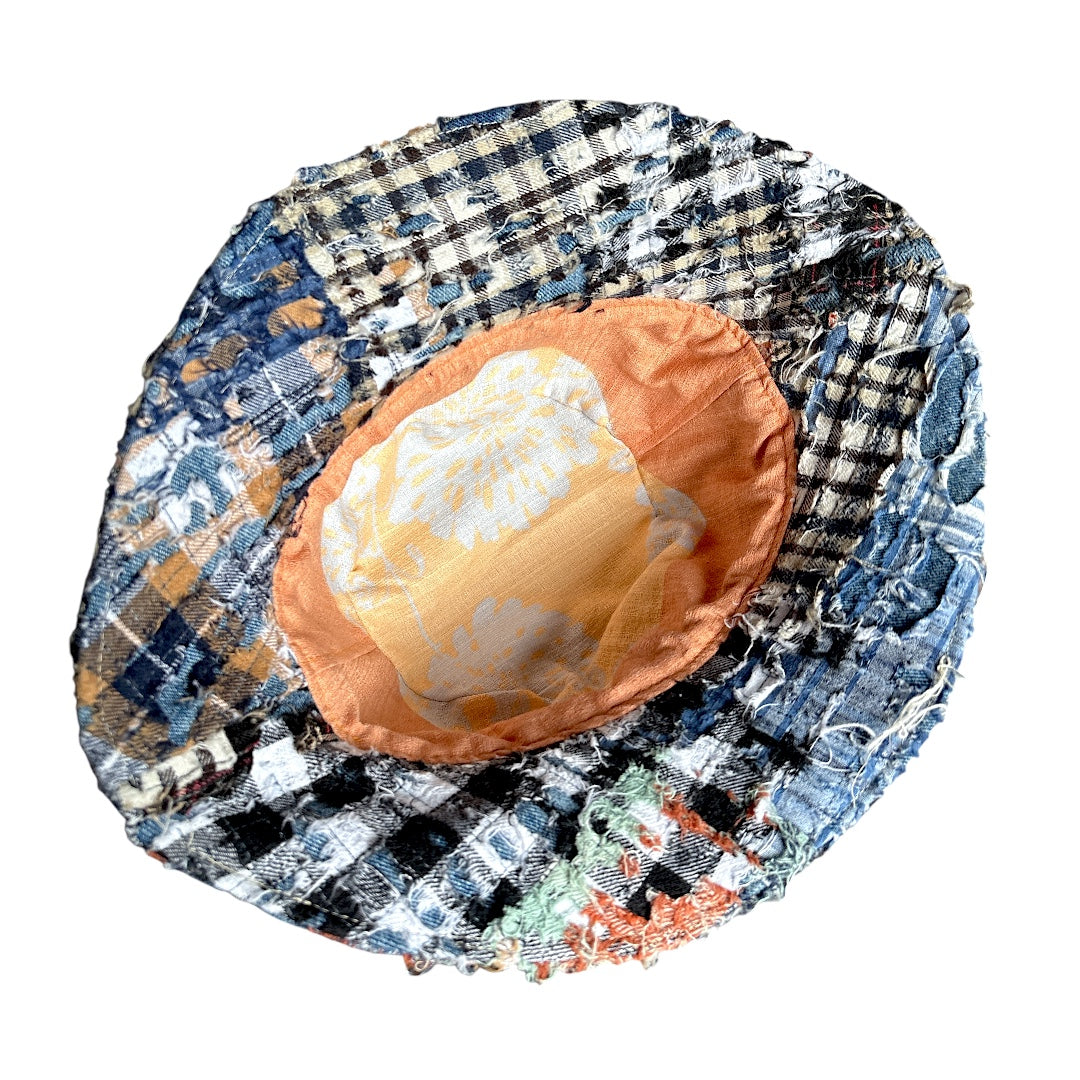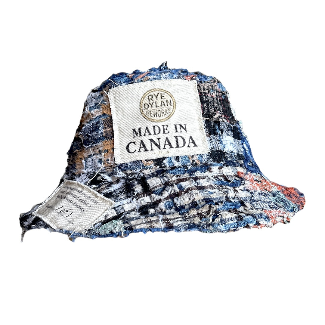 This bucket hat is one of a kind and handmade from 6 different flannel shirts a denim base then distressed with custom patches and the inside is lined with Japanese silk.